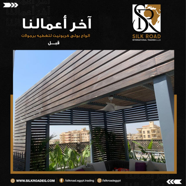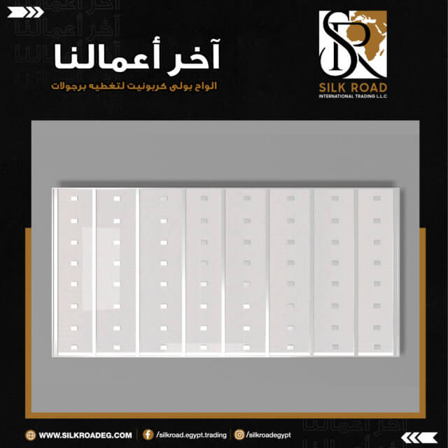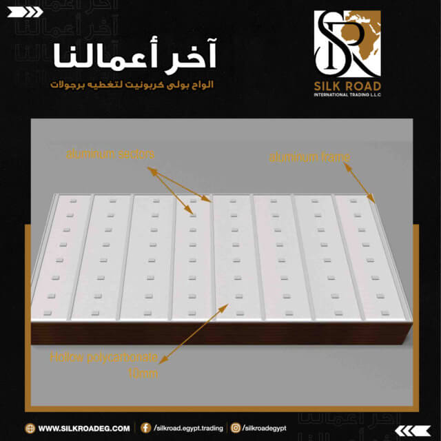 Silk Road Egypt2021-10-12T11:39:53+02:00 Previous Work Description الواح البولي كربونات لبرجولاتقوي ومقاوم للصدمات ، أقوى 200 مرة من الزجاج.يقلل من الحاجة إلى الإصلاحات المكلفة ويحافظ على السلامة في المباني مع إمكانية الوصول إلى السقفمميزاته:انتقال الضوء الطبيعي العاليمناسبة في المناخات الحارة والباردةخفيفة الوزن وسهلة التركيبحماية طويلة الأمد من الأشعة فوق البنفسجيةضد الضرر والصدماتضد الشمس والامطار والعوامل الجويةضد الحارئق